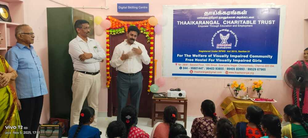 Thaaikarangal Charitable Trust proudly inaugurated the Digital Skill Center for visually impaired female students on 05 November 2025.
